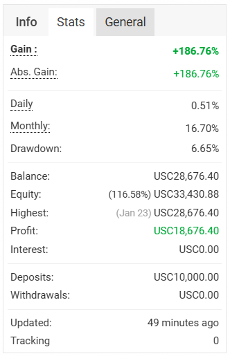 All Time Profit (USC/%): USC18,676.40/186.76%