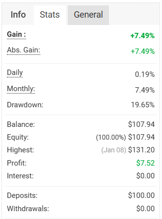 All Time Profit (USD/%): USD7.52/7.49%