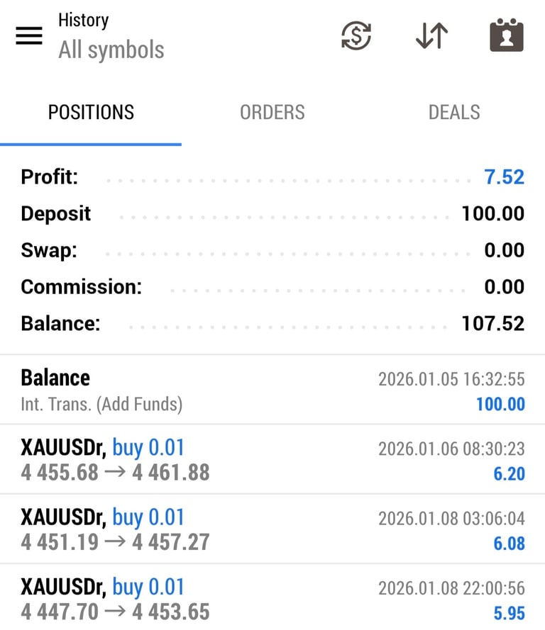 Previous profit WITHDRAWN AND ENJOYED. Restarted the same EA on a new account of only $100. Let's see how it goes. 7% for a start is not bad at all.